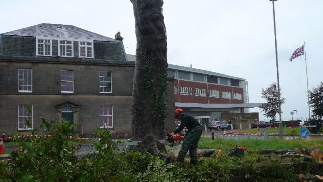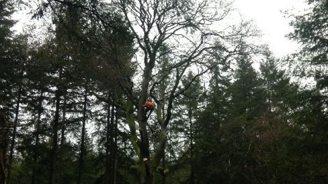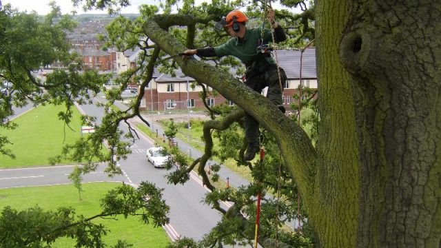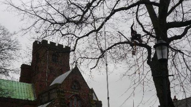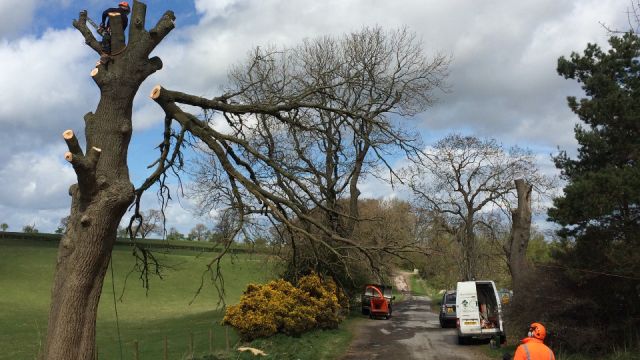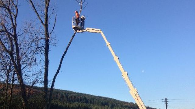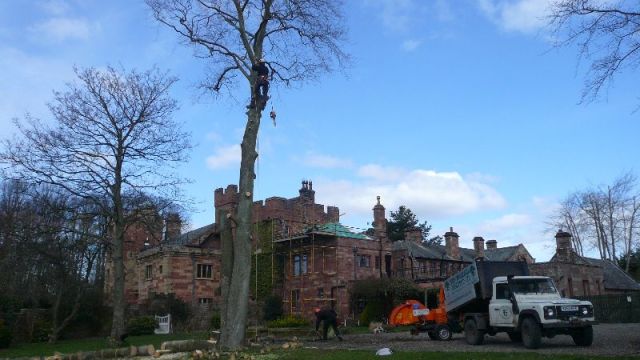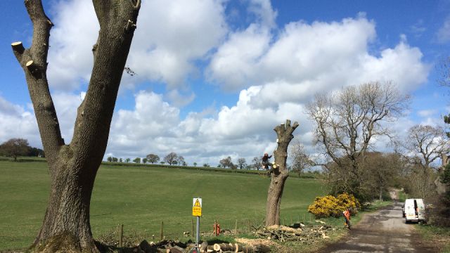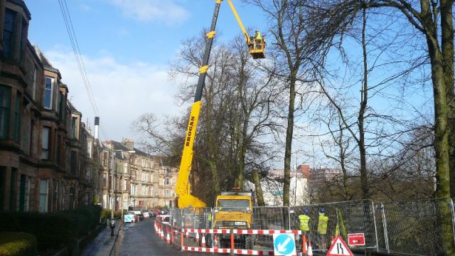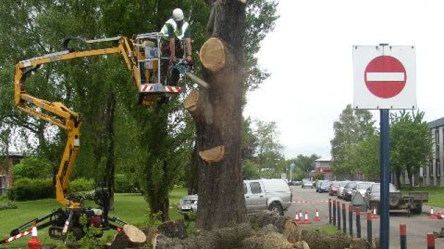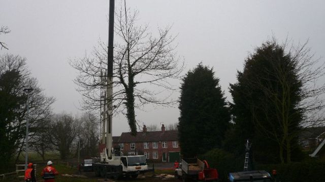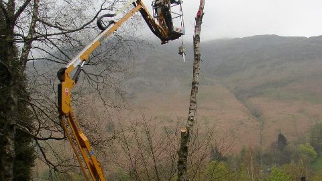 Generally all works within the tree are carried out using ropes and harnesses, but we will occasionally use mobile work platforms or cranes.